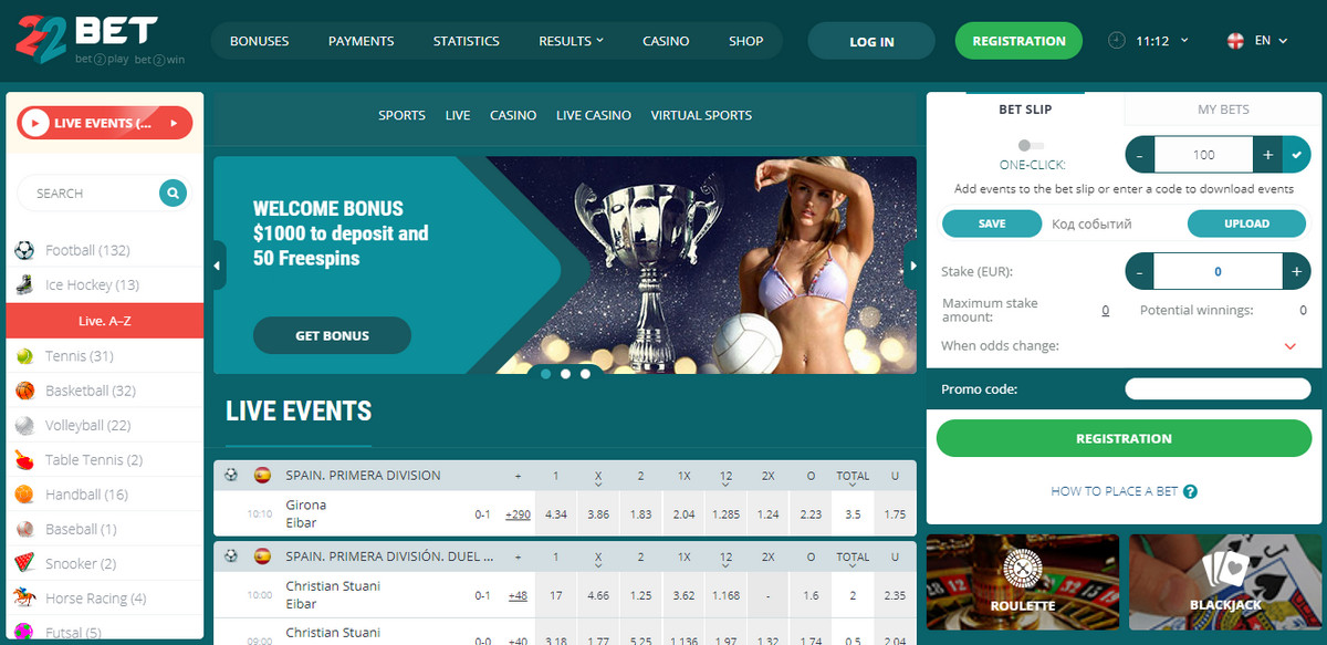 A 22Bet customer is entitled to only one registration bonus in the amount of 122%