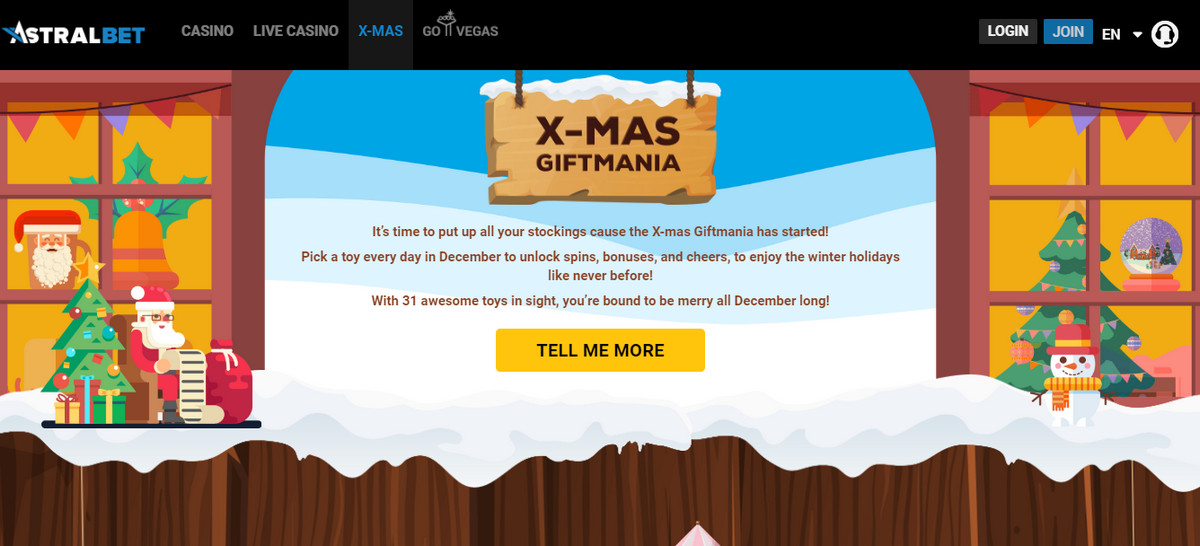 CLICK HERE TO REGISTER ACCOUNT ON ASTRALBETIt’s time to put up all your stockings cause the X-mas Giftmania has started! AstralBet