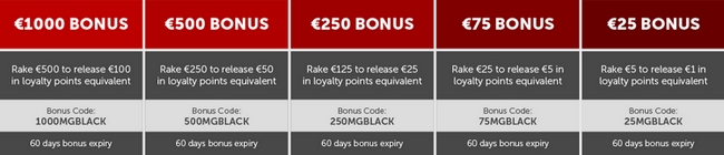 You will also earn loyalty points while unlocking the bonus, 10 Loyalty Points are awarded for every $1 paid in rake/tournament fee.