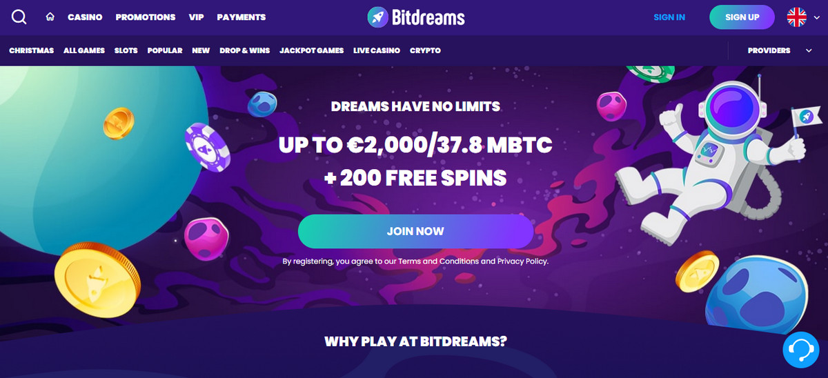 Bitdreams 200 Free Spins & Up to 2000 EUR Bonuses