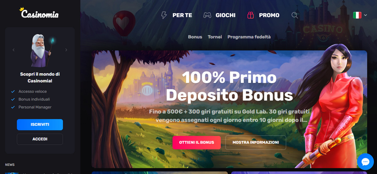 Casinomia è un casinò con licenza che offre una vasta gamma di giochi con RTP confermato dai migliori fornitori mondiali. Il nostro obiettivo principale è fornire all’utente un servizio di qualità. Per fare questo, abbiamo una vasta esperienza nel campo del gioco d’azzardo, un grande team di sviluppo e supporto reattivo. Ascoltiamo i nostri giocatori, aggiorniamo regolarmente il sito e sviluppiamo bonus personali per rendere il tuo tempo trascorso in Casinomia comodo e piacevole.