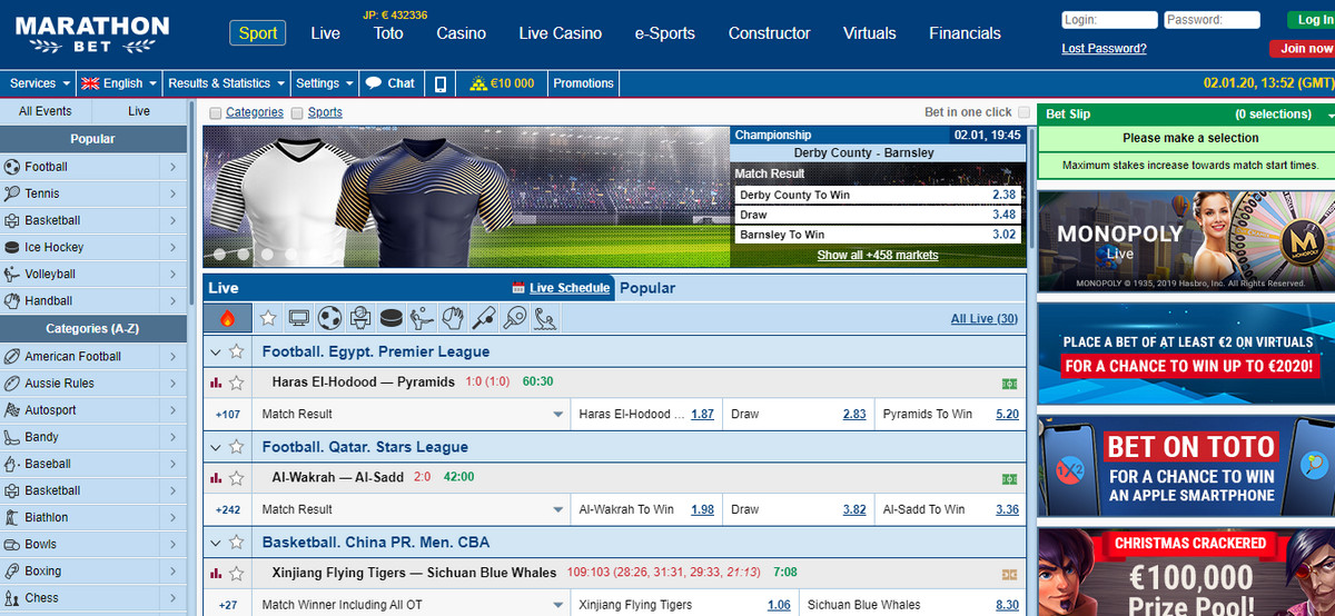 The MarathonBet loyalty program is available for all customers who can place bets on MarathonBet.