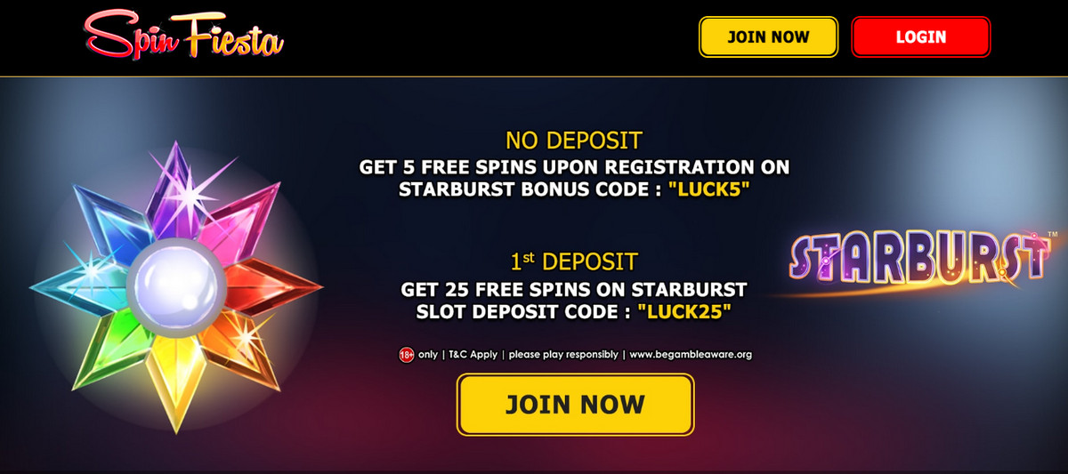 1st Deposit – Get 25 free spins on Starburst slot. Deposit code: LUCK25