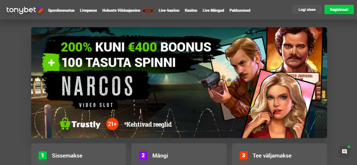 CLICK HERE TO REGISTER ACCOUNT ON TONYBET200% kuni 400€ boonus + 100 tasuta spinni NARCOS video slot in TonyBet