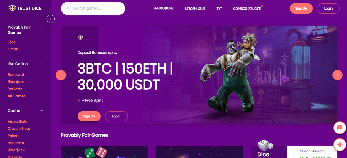 We are also offering 25 free spins along with the first deposit bonus. Please note that the free spins will only be available for 7 days. To see Free Spins click to account name -> Bonus. Trustdice